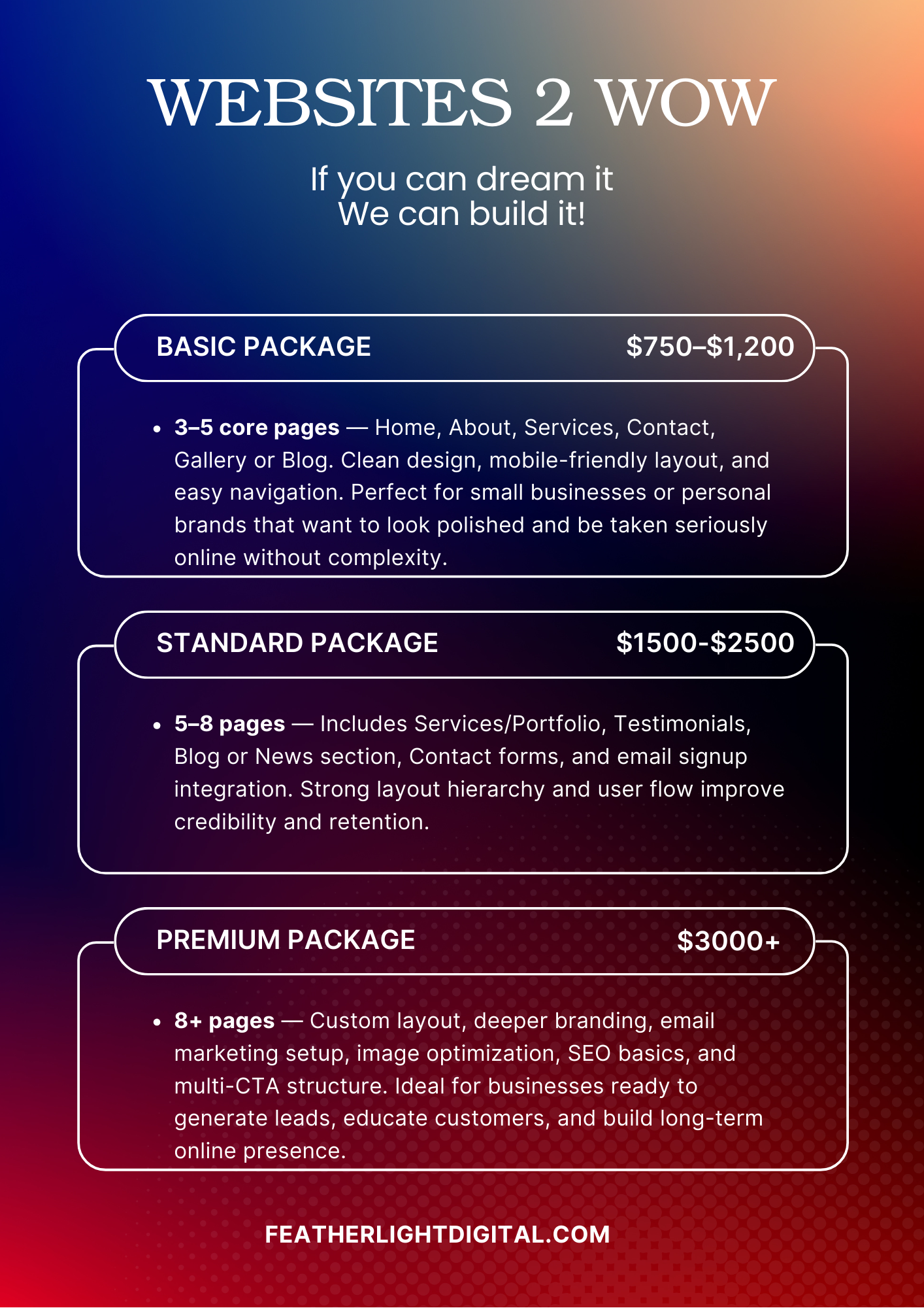 At Featherlight Digital we believe every story deserves a beautiful space online. From the first idea to launch, we keep it simple, cozy, and professional — so you can focus on what matters most.